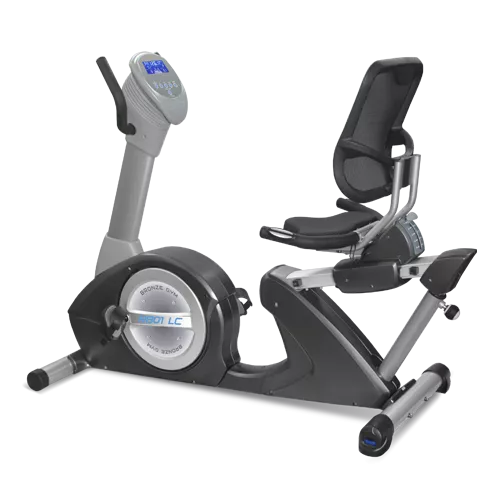 Bronze Gym R801 LC - полупрофессиональный горизонтальный велотренажер, ориентированный как на клубы со сравнительно невысокой проходимостью, так и на тех домашних пользователей, кто требует от тренировки максимальной эффективности. Электромагнитная приводная система высшего класса (EMS), утяжеленный сбалансированный маховик весом 11 кг. и дисковый трехкомпонентный педальный узел обеспечивают великолепный мягкий ход. Эргономичное дышащее сеточное сидение обладает уникальной системой настройки - он регулируется по горизонтали, диагонали и, что практически не встречается на горизонтальных велотренажерах, по вертикали. Таким образом, абсолютно любой пользователь, вне зависимости от его телосложения, обязательно найдет максимально удобное для себя положение. По сути, за счет вертикальной регулировки, тренажер можно использовать как во варианте классического горизонтального велотренажера, так и в качестве популярного в Европе и США так называемого гибрида (велотренажер с диагональной посадкой, что-то среднее между вертикальным и горизонтальным типом). Система нагружения поделена на 16 уровней с широким диапазоном от 10 до 680 Ватт. Навигационная часть представлена многофункциональной голубой LCD консолью диагональю 14 см. с профилем тренировки. В число программ входят 4 предустановленных тренировочных профиля, случайная тренировка, фитнес-тест, 4 пользовательских, 4 пульсозависимых режима (60%/75%/85%/THR), несколько режимов жироанализатора Body Fat (телосложение BodyType, индекс массы тела BMI, индекс метаболизма BMR). Максимальный вес пользователя - 160 кг.