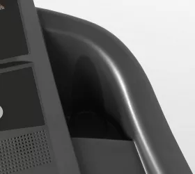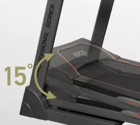 Тренировочный компьютер оснащен голубым дисплеем диагональю 7 дюймов (17.8 см.) с отображением программных профилей. В число самих программ входят 22 режима, направленных на решение самого широкого спектра задач – от развития силы и выносливости до снижения веса и улучшения сердечно-сосудистой системы. Помимо предустановленных программ, можно воспользоваться самостоятельно регулируемым ручным режимом, а также создать собственную программу в одном из 3-ех пользовательских режимов. На передней части консоли расположена подставка под планшет или смартфон. К другим особенностям дорожки относятся гидравлическая система складывания, которая существенно облегчает складывание дорожки, а при раскладывании обеспечивает медленное опускание полотна в последней фазе, гарантируя легкость и безопасность. В виду того, что дорожка тяжелая, перемещение дорожки происходит не на двух, как обычно, роликах, а на четырех - при этом тренажер не нужно наклонять.