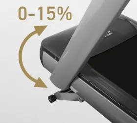По своим остальным характеристикам Bronze Gym T930M PRO полностью соответствует заявленному уровню - максимальная скорость 22 км/ч, угол наклона от 0 до 15%, ортопедическое беговое полотно профессионального уровня толщиной 2.5 мм и размером беговой зоны 156*58cм. Амортизационная система оборудования представлена мультиабсорбирующим динамическим элементом на основе 4 эластомеров и 4 амортизирующих подушек по всему периметру полотна.