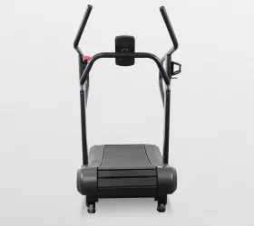 Беговая дорожка BRONZE GYM T940M CATERPILLAR относится к новому, набирающему популярность типу беговых дорожек с гусеничным беговым полотном и с вогнутой формой поверхности. Такой тип отличается от классического по нескольким параметрам. Пожалуй, наиболее существенное отличие состоит в том, что пользователь может передвигаться на любых доступных для него скоростях без всяких ограничений, самостоятельно регулируя скорость самого полотна. Если в классических беговых дорожках полотно приводится в действие электромотором и тренирующийся следует за установленной на консоли скоростью, в случае T940M CATERPILLAR сам пользователь "ногами" определяет скорость движения полотна, по сути самостоятельно выступая в роли двигателя дорожки. Отсюда вытекает ряд практических преимуществ. Во-первых, за счет необходимости ногами расталкивать полотно, существенно увеличивается общая нагрузка на организм (как следствие, количество потраченных калорий).