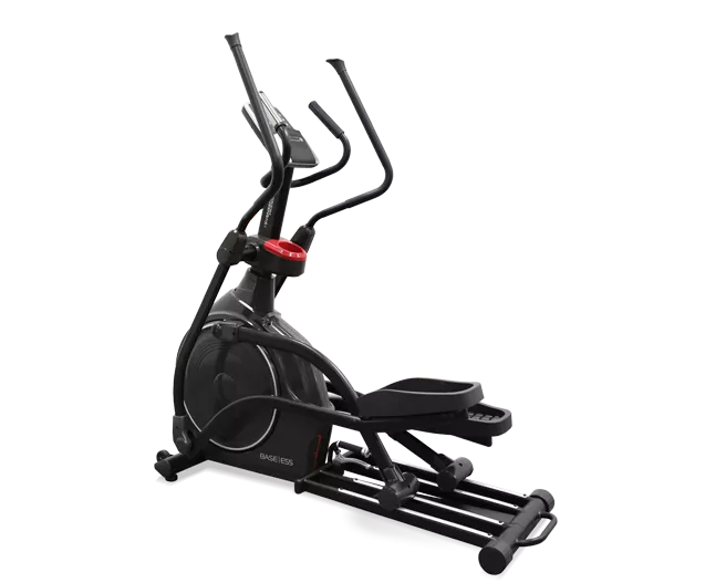Электромагнитный эллиптический тренажер E55 от SVENSSON INDUSTRIAL - это пятая по счету модель серии BASE, которая уже имеет в своем арсенале беговые дорожки, адаптивный и эллиптический тренажеры. BASE - это уникальные продукты от шведского интерьерного дизайнера Патрика Хагборга (Patrik Hagborg), призванные обеспечить коммерческий сегмент с невысокой проходимостью (отели, корпоративные залы, спортивные школы и санатории). К тому же, вся линейка идеально подойдет и для домашнего использования. Как и во всей серии, в модели BASE E55 основным цветовым решением стал один из самых актуальных цветов - черный. Особый, премиальный вид оборудованию придает оттенок красного цвета. На BASE E55 используются и элементы цвета металлик - это холодный цвет, напоминающий нам о стране происхождения эллиптического тренажера - Швеции. Это выглядит не только эффектно, но и разбавляет чрезмерную строгость образа.