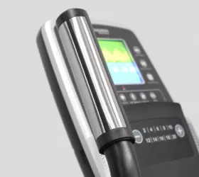 Отдельного внимания заслуживает консольная часть BASE E55. Тренировочный компьютер представлен многофункциональным цветным LCD-дисплеем диагональю 14 см. На экран выводятся следующие показатели: тренировочный профиль, время, дистанция, скорость, калории, обороты в минуту и пульс. Значения регулируются клавишами сенсорного управления на дисплее. BASE E55 богат и на разнообразие тренировочных программ. Среди предустановленных программ можно воспользоваться одним из 10 вариантов, направленных на достижение различных показателей, таких как развитие скорости, повышение выносливости, укрепление сердечно-сосудистой системы и похудение. Более того, для каждой из встроенных программ устанавливаются конкретные цели в виде дистанции, времени и количества сжигаемых калорий - при достижении одного из этих показателей тренировка завершится. На отдельные клавиши консоли выведены 3 режима тренировок (низкие и средние уровни сопротивления, а также интервальная тренировка) и 3 возрастные программы (молодой, средний и преклонный возраст). Помимо этого, можно воспользоваться самостоятельно регулируемым ручным режимом, Ватт-программой и создать собственную тренировку в одном из 4-х пользовательских режимов. Есть здесь и 4 классические пульсозависимые программы. Для точного определения пульса и просто комфортной тренировки в компьютер встроен высокоточный беспроводной телеметрический приемник (для считывания частоты сердечного ритма рекомендован нагрудный ремень-передатчик Polar T34). По завершении тренировки функция Recovery оценит способность сердечно-сосудистой системы к восстановлению. Жироанализатор (Body Fat) предоставит дополнительную информацию o состоянии организма.