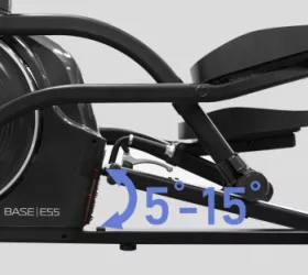 Безусловно, одним из важнейших преимуществ эллиптического тренажера является длина шага. Особенно если речь идет о биомеханических параметрах. Для SVENSSON INDUSTRIAL BASE E55 длина шага составляет 52 см - эллипсоиды с такими показателями обычно установлены в клубах. Расстояние между педалями (супермалый Q-Фактор E.S.Q.F. ) составляет всего 5 см. Следует отметить, что это один из лучших показателей в классе. Важной особенностью эллипса BASE E55 является возможность изменять угол наклона. Для эллиптических тренажеров это довольно редкая опция. Угол наклона изменяется механическим путем в трех позициях по технологии HC System 15Inc (Handle Control) до 15 градусов, что позволит разнообразить тренировочный процесс и добавить интенсивности. Длина шага на эллипсоиде изменяется в меньшую сторону при увеличении угла наклона.