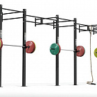 Функциональная рама совмещает в себе силовой снаряд и снаряд для выполнения упражнений из гимнастической составляющей функционального тренинга. Также она дополняется навесным оборудованием: брусьями, упорами, мишенями, гимнастическими кольцами, канатами и т.д.
