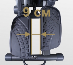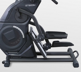 Степперы являются одними из самых безопасных видов кардио оборудования. ST800M не является исключением. Тренажер создан для занятий с низкой ударной нагрузкой на суставы и позвоночник. За счет своей конструкции и отлаженных биомеханических свойств достигается более мягкое воздействие на проблемные участки. Колени не перегружаются и акцент сосредотачивается на самих мышцах. Степпер оснащен аэромагнитной системой нагружения, позволяющей сделать ход более плавным и разнообразить интенсивность тренировок. Для удобства, на оборудовании установлены педали увеличенного размера, которые покрыты антискользящим материалом. Высота шага для ST800M составляет 300 мм. Пользователи могут воспользоваться преимуществами рукояток, на которых расположены сенсорные датчики пульса. Горизонтальные и вертикальные поручни позволяют держать руки в разных положениях и обеспечивают устойчивость пользователя при выполнении упражнений, а также при подходах к спортивному снаряду.