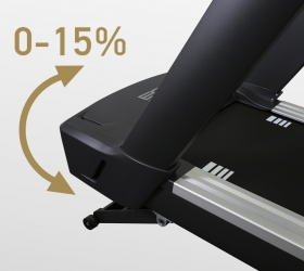 Беговая дорожка идеально подойдет для любителей высокоэффективных тренировок и профессиональных спортсменов. Чтобы удовлетворить самые высокие потребности, под капотом T1000M PRO TFT TURBO расположен двигатель мощностью 5 л.с. (в режиме пиковых нагрузок 7,5 л.с.). Оборудование способно развивать скорость до 25 км/ч, а угол наклона изменяется электрическим способом в 15 положениях. Для улучшения качества тренировочного процесса и его разнообразия на T1000M PRO TFT TURBO установлено ортопедическое полотно профессионального класса (толщина 2,5 мм) с огромной беговой зоной размером 162*60 см. Для сокращения нагрузки на суставы модель оснащена амортизационной системой на базе 4 эластомеров и подушек, расположенных по периметру полотна.
