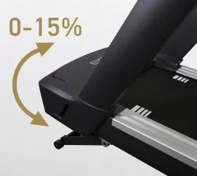 Беговая дорожка идеально подойдет для любителей высокоэффективных тренировок и профессиональных спортсменов. Чтобы удовлетворить самые высокие потребности, под капотом T1000M PRO TFT TURBO расположен двигатель мощностью 5 л.с. (в режиме пиковых нагрузок 7,5 л.с.). Оборудование способно развивать скорость до 25 км/ч, а угол наклона изменяется электрическим способом в 15 положениях. Для улучшения качества тренировочного процесса и его разнообразия на T1000M PRO TFT TURBO установлено ортопедическое полотно профессионального класса (толщина 2,5 мм) с огромной беговой зоной размером 162*60 см. Для сокращения нагрузки на суставы модель оснащена амортизационной системой на базе 4 эластомеров и подушек, расположенных по периметру полотна.