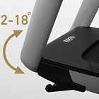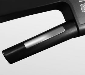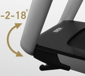 Помимо двигателя, у T1200M PRO масса других преимуществ. Электрически изменяемый угол наклона от -2 до 18%. Добавлена функция «Склон», которая означает, что у дорожки есть возможность установки отрицательного угла наклона бегового полотна до минус 2%. Усиленная двойная дека профессионального класса толщиной 25 мм. Длина беговой зоны составляет достойные 157 см при ширине 58 см. Полотно, толщина которого 2.4 мм, выполнено из специального полимера, который не только гарантирует длительную эксплуатацию, но и обеспечивает надежное сцепление. Мультиабсорбирующая динамическая система амортизации на основе системы комплексной защиты, включающей систему виброгашения. Передняя и центральная часть беговой зоны (то есть там, где идет основная ударная нагрузка на ноги) настроены на более мягкую амортизацию. Задняя часть, в зоне отрыва стопы, - на более жесткую.