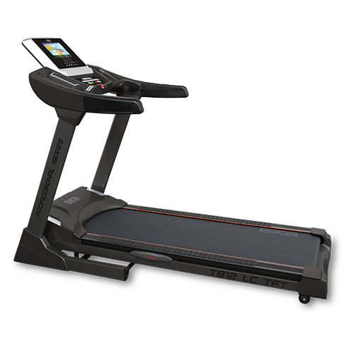 Bronze Gym T812 LC TFT - профессиональная беговая дорожка для использования в отелях, санаториях, небольших корпоративных залах и других аналогичных объектах со сравнительно небольшой проходимостью. На беговой дорожке установлен двигатель переменного тока (AC) мощностью 3.25 л.с. производства японской Fuji Electric Co., рассчитанный на эксплуатацию до 10 часов в день. Усиленная механическая часть представлена рамой с усиленным каркасом, построенном на профиле 80*40 мм с использованием стоек 120*30 мм. Дорожка достаточно тяжелая, ее нетто-вес составляет 105 кг, максимальный вес пользователя - 170 кг.