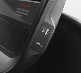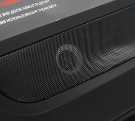 Мультимедийная компонента представлена встроенными динамиками с разъемами AUX и USB для подключения мобильных устройств и воспроизведения через них аудио-файлов. Порт USB предназначен для зарядки мобильных устройств. Дорожка имеет транспортировочные ролики и компенсаторы неровностей пола. Приятной опцией является подставка под телефон или планшет, а также 2 отсека для емкостей и личных аксессуаров.