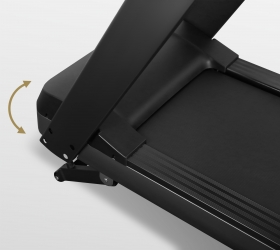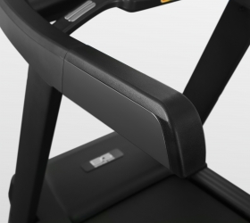 По своим остальным характеристикам Bronze Gym T815M полностью соответствует заявленному уровню - максимальная скорость 20 км/ч, угол наклона от 0 до 15%, беговое полотно высокой износостойкости толщиной 2.5 мм и размером беговой зоны 150*56 cм, есть ступенька около заднего вала для облегчения подъема на поверхность бегового полотна. Боковые направляющие справа и слева от полотна с антискользящим покрытием. Для измерения пульса предусмотрены удобные передние поручни с датчиками. Надежный амортизационный блок настроен на коммерческие режимы эксплуатации. Амортизация настроена на средний уровень жесткости благодаря мультиабсорбирующей динамической системе на основе 8 эластомеров по периметру беговой поверхности.