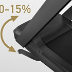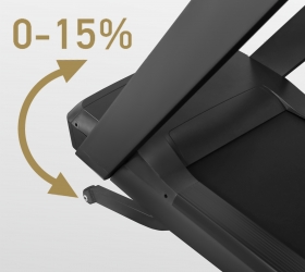 Модель оборудована набором самых востребованных опций, необходимых для достижения тренировочных целей. На T900M установлен двигатель с мощностью 4 л.с. В режиме пиковых нагрузок этот показатель увеличивается до 6 л.с. По своим остальным характеристикам Bronze Gym T900M также соответствует заявленному уровню - максимальная скорость 22 км/ч, угол наклона от 0 до 15%, беговое полотно профессионального уровня толщиной 2.2 мм и размером беговой зоны 155*56 cм. Амортизационная система оборудования представлена мультиабсорбирующим динамическим элементом на основе 6 эластомеров, расположенных по периметру полотна.