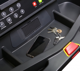 К другим особенностям дорожки относится USB порт, предназначенный для зарядки мобильных устройств. Приятной опцией является подставка под телефон или планшет, а также держатель для бутылочки с водой.