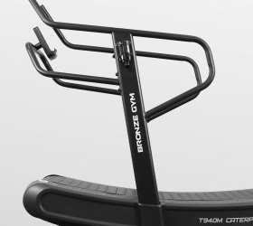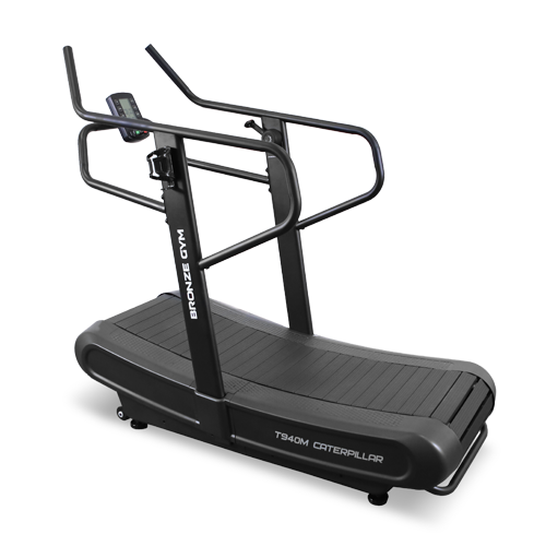 Беговая дорожка BRONZE GYM T940M CATERPILLAR относится к новому, набирающему популярность типу беговых дорожек с гусеничным беговым полотном и с вогнутой формой поверхности. Такой тип отличается от классического по нескольким параметрам. Пожалуй, наиболее существенное отличие состоит в том, что пользователь может передвигаться на любых доступных для него скоростях без всяких ограничений, самостоятельно регулируя скорость самого полотна. Если в классических беговых дорожках полотно приводится в действие электромотором и тренирующийся следует за установленной на консоли скоростью, в случае T940M CATERPILLAR сам пользователь "ногами" определяет скорость движения полотна, по сути самостоятельно выступая в роли двигателя дорожки. Отсюда вытекает ряд практических преимуществ. Во-первых, за счет необходимости ногами расталкивать полотно, существенно увеличивается общая нагрузка на организм (как следствие, количество потраченных калорий).