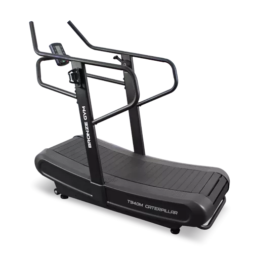Беговая дорожка BRONZE GYM T940M CATERPILLAR относится к новому, набирающему популярность типу беговых дорожек с гусеничным беговым полотном и с вогнутой формой поверхности. Такой тип отличается от классического по нескольким параметрам. Пожалуй, наиболее существенное отличие состоит в том, что пользователь может передвигаться на любых доступных для него скоростях без всяких ограничений, самостоятельно регулируя скорость самого полотна. Если в классических беговых дорожках полотно приводится в действие электромотором и тренирующийся следует за установленной на консоли скоростью, в случае T940M CATERPILLAR сам пользователь "ногами" определяет скорость движения полотна, по сути самостоятельно выступая в роли двигателя дорожки. Отсюда вытекает ряд практических преимуществ. Во-первых, за счет необходимости ногами расталкивать полотно, существенно увеличивается общая нагрузка на организм (как следствие, количество потраченных калорий).