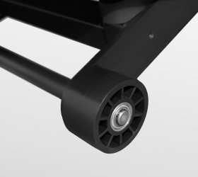 BRONZE GYM T960 PRO - профессиональная беговая дорожка для использования в тренажерных залах с любой проходимостью в режиме 24/7. Надежный двигатель мощностью 4.5. л.с. переменного тока (7.2 л.с. в режиме пиковой мощности) от японской Fuji Electric разгоняет полотно до 22 км/ч Размеры беговой зоны составляют 155 см в длину и 60 см в ширину. Ортопедическое полотно Habasit NVT-232 толщиной 3.2 мм с системой автоматической смазки рассчитано на серьезную коммерческую эксплуатацию. Усиленная парафинированная дека толщиной 25 мм имеет специальные сертификаты технических и экологических директив EO/ROHS (ЕС) и 4 STAR GRADE F (Япония)). Мультиабсорбирующая динамическая система амортизации на основе изменяемых эластомеров antiSHOCKwave™ имеет 2 зоны жесткости. Передняя и центральная часть беговой зоны (то есть там, где идет основная ударная нагрузка на ноги) настроены на более мягкую амортизацию. Задняя часть, в зоне отрыва стопы, - на более жесткую.