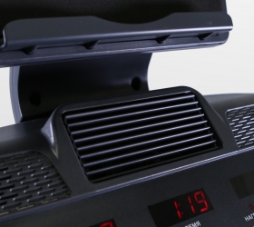 К числу дополнительных преимуществ модели относится возможность воспроизведения и вывода на динамики аудио файлов (через MP3-плеер, смартфон или планшет). Мобильное устройство можно расположить на подставке консоли и при необходимости зарядить (через USB-порт). Также приятной опцией является держатель для бутылочки с водой.