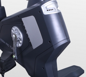 U1000M PRO TURBO оборудован удобным сиденьем анатомической формы. Есть возможность регулировки в вертикальном и горизонтальном положении. Рифленые самобалансирующиеся педали с прорезиненными многопозиционными ремешками создают надежное сцепление на любых скоростях. Велоэргометр удобно перемещать благодаря двум транспортировочным роликам, а точное горизонтальное положение обеспечивают компенсаторы неровностей пола. Максимальный вес пользователя - 180 кг.