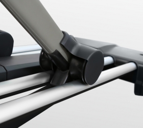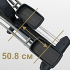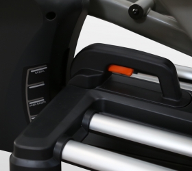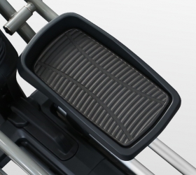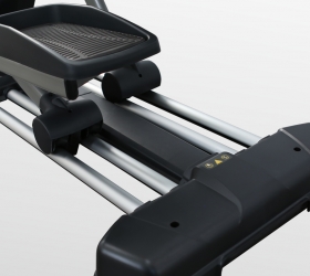 X800M обладает рядом преимуществ в биомеханических свойствах. Среди них бесконтактная электромагнитная приводная система высшего класса (индукционный тормоз EMS) и сбалансированный маховик с инерционным весом 25 кг. Расположенный спереди маховик позволяет значительно лучше настроить общую траекторию движения, уменьшить расстояние между педалями и проще добиться увеличения длины шага. Расстояние между педалями для BRONZE GYM X800M составляет всего 6,4 см (супермалый Q-Фактор), длина шага равна 50,8 см. Мягкое педалирование и равномерное распределение нагрузки на всем цикле движения осуществляется за счет супернадежного литого шатуна в педальном узле с использованием качественных подшипников. За плавное и тихое скольжение отвечают сдвоенные полиуретановые ролики коммерческого класса, которые передвигаются по усиленным парным направляющим. Последние обеспечивают как устойчивость тренажера, так и его надежность. Важной особенностью эллиптического эргометра является возможность изменять угол наклона. Для эллиптических тренажеров это довольно редкая опция. Угол наклона изменяется механическим путем до 15%, что позволит разнообразить тренировочный процесс и добавить интенсивности.