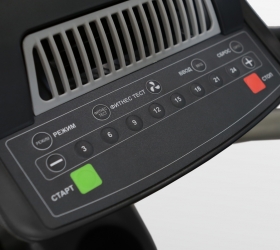 Тренировочный компьютер представлен дисплеем профессионального уровня. Многофункциональный LCD-дисплей с графической матрицей и цветной подсветкой. На экран компьютера выводятся все основные данные – время, скорость, дистанция, уровень нагрузки, расход калорий, пульс, темп, Ватты, фитнес тест, температура в помещении. В программный пакет входят 12 предустановленных программ, в которых используются различные виды тренировок. Помимо предустановленных программ, можно воспользоваться самостоятельно регулируемым ручным режимом, а также создать собственную программу в одном из 4-х пользовательских режимов. 4 пульсозависимые программы отвечают за тренировку тех пользователей, которым важно контролировать верхние пределы частоты сердечного ритма. Плюс ко всему есть Ватт-программа.