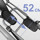 Помимо технологии "плавающих педалей"Advanced Suspension Tracking™, XE902 PRO обладает рядом других важных преимуществ. Безусловно, важна рама - иначе тренажер просто не выдержит высокоинтенсивных нагрузок. XE902 PRO построен с использованием сварного профиля максимальной прочности (Ultra Heavy Gauge Steel). Именно поэтому нетто вес изделия составляет внушительные 141 кг, а максимальный вес рассчитан на пользователей до 180 кг. Великолепная плавность хода обеспечивается электромагнитной приводной системой на базе EMS генератора (тренажер не требует подключения к сети), cбалансированным маховиком с инерционным весом 26,4 кг. и используемые в сочленениях немецкими подшипниками FAG. Длина шага 52 см. достаточна для комфортной эффективной тренировки. Расстояние между педалями (супермалый Q-Фактор E.S.Q.F.™) составляет всего 3 см.
