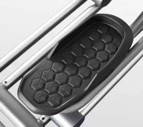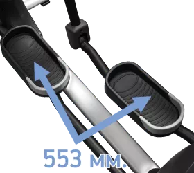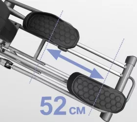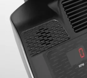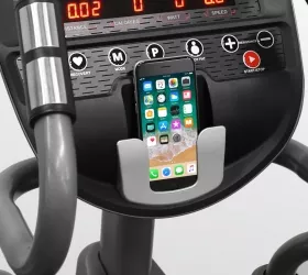 Тренировочная консоль BRONZE GYM XR812 LC рассчитана на коммерческое использование и представляет собой LED дисплей и 4 буквенно-цифровых экрана. Основной LED дисплей отображает программные профили, а буквенно-цифровые экраны выводят все необходимые параметры тренировки. В число самих программ входят 22 различных режима, куда относятся 12 предустановленных программных профилей, ручной режим, 4 пульсозависимые и 4 пользовательские программы, а также Ватт режим (диапазон нагрузки находится в диапазоне от 10 до 350 Ватт). Здесь также есть жироанализатор (Body Fat) и функция оценки восстановления организма после физических нагрузок (Recovery). Мультимедийная компонента представлена динамиками мощностью 3 Ватта, а также разъемом AUX IN для подключения мобильных устройств и воспроизведения через них аудио-файлов. Есть также USB вход, он используется для зарядки смартфонов и планшетов. Полезная опция - подставка под мобильные устройства, во время тренировки можно смотреть фильмы или серфить в интернете. Кстати, в XR812 LC предусмотрены 2 подставки - одна для телефона, вторая для планшета. Оригинально сделаны вентиляторы - их тоже два. Один направлен на лицо и шею, второй - на торс. Эллипс имеет транспортировочные ролики и компенсаторы неровностей пола. Максимальный вес пользователя 160 кг.