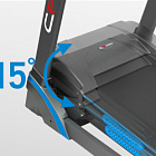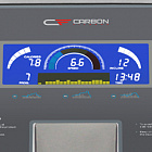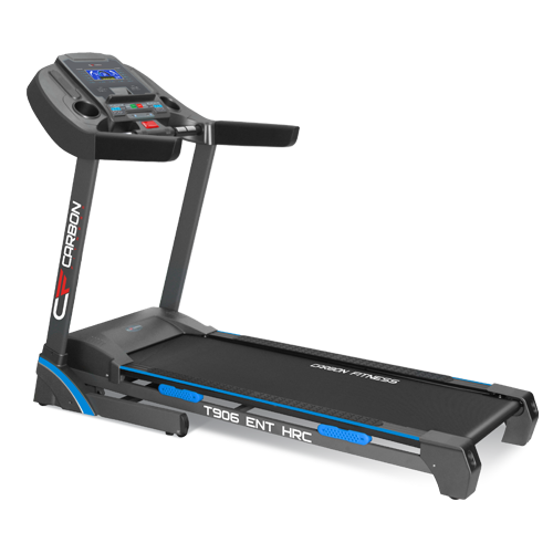 CARBON FITNESS T906 ENT HRC - беговая дорожка премиального уровня, одинаково подходящая для использования в домашних условиях либо небольших корпоративных залах. Двигатель мощностью 3.5 л.с. постоянного тока, беговое полотно Club Grade размером 150*48 см., скоростной режим от 1 до 20 км./ч. и угол наклона от 0 до 15% - все эти характеристики относят T906 ENT HRC к классу полукоммерческих беговых дорожек. Амортизационная система построена на базе современной перспективной технологии динамических сотовых подушек (Cell-S™). Многофункциональный дисплей с диагональю 7 дюймов (17.8 см.) выводит на экран все основные параметры тренировки, включая профиль тренировочных программ. В программный пакет входит 15 предустановленных программ различного назначения, а также самостоятельно регулируемый ручной режим. Помимо этого, можно создать собственную программу в одном из 3-ех пользовательских режимов или обратиться к пульсозависимым программам. На стыке комфорта и эффективности находится функция беспроводного определения частоты сердечного ритма (приемник сигнала уже встроен в консоль, а нагрудный ремень-передатчик приобретается отдельно). Как и любая другая программа, пульсозависимая тренировка длится не менее 20 минут - очевидно, что постоянно держать руки на сенсорных датчиках пульса крайне неудобно, да и к тому же они могут давать достаточно большую погрешность измерения. Разнообразить тренировку поможет мультимедийная составляющая - в консоль дорожки встроены колонки мощностью 4 Ватта, а носителями аудио файлов выступают USB накопитель либо подсоединяемый смартфон. За удобство складывания отвечает двухфазная гидравлическая система Easy Drop™ - она существенно облегчает складывание тренажера, а при раскладывании обеспечивает медленное опускание полотна в последней фазе, гарантируя легкость и безопасность. Перемещение дорожки происходит за счет 2-ух транспортировочных роликов.
