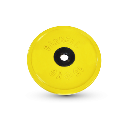Диск стальной, обрезиненный. При термообработке (обрезинивании) для надежного сцепления резины и металла используется термоклей. Втулка металлическая, окрашена специальной спортивной краской черного цвета.