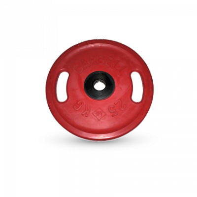 Диск стальной, обрезиненный. При термообработке (обрезинивании) для надежного сцепления резины и металла используется термоклей. Втулка металлическая, окрашена специальной спортивной краской черного цвета.