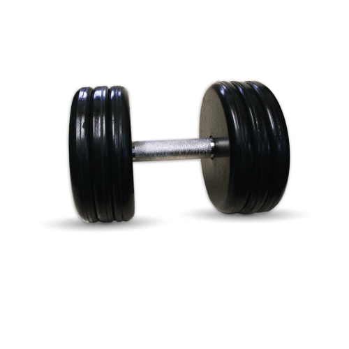 Гантели собираются из дисков 1,25, 2,5 и 5 кг. и вращающихся хромированных ручек с заглушками для предотвращения разукомплектации.
