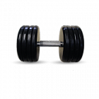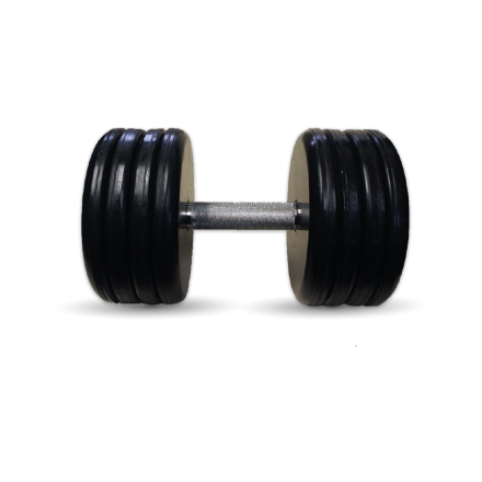 Гантели собираются из дисков 1,25, 2,5 и 5 кг. и вращающихся хромированных ручек с заглушками для предотвращения разукомплектации.