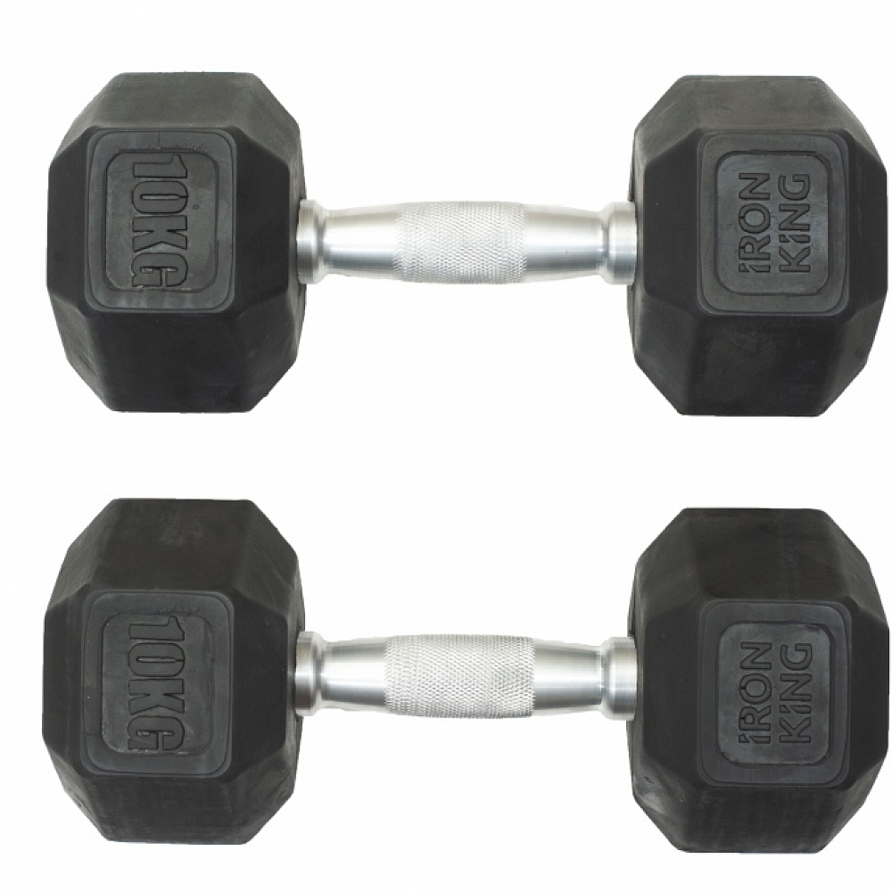 Гексагональная обрезиненная гантель 10 кг. Цельнолитые утяжелители не соскользнут с рукояти в отличие от дисков. Резиновое покрытие не повреждает напольное покрытие при падении гантели. Преимущества гантели IRON KING: Хромированная рукоять Насечки против скольжения и надежного хвата Шестигранные утяжелители – для предотвращения самопроизвольного перемещения гантели Российская резина – нетоксичная, эластичная и прочная Цена и доставка от производителя! Возможность брендирования - нанесем ваш логотип при оптовой закупке.