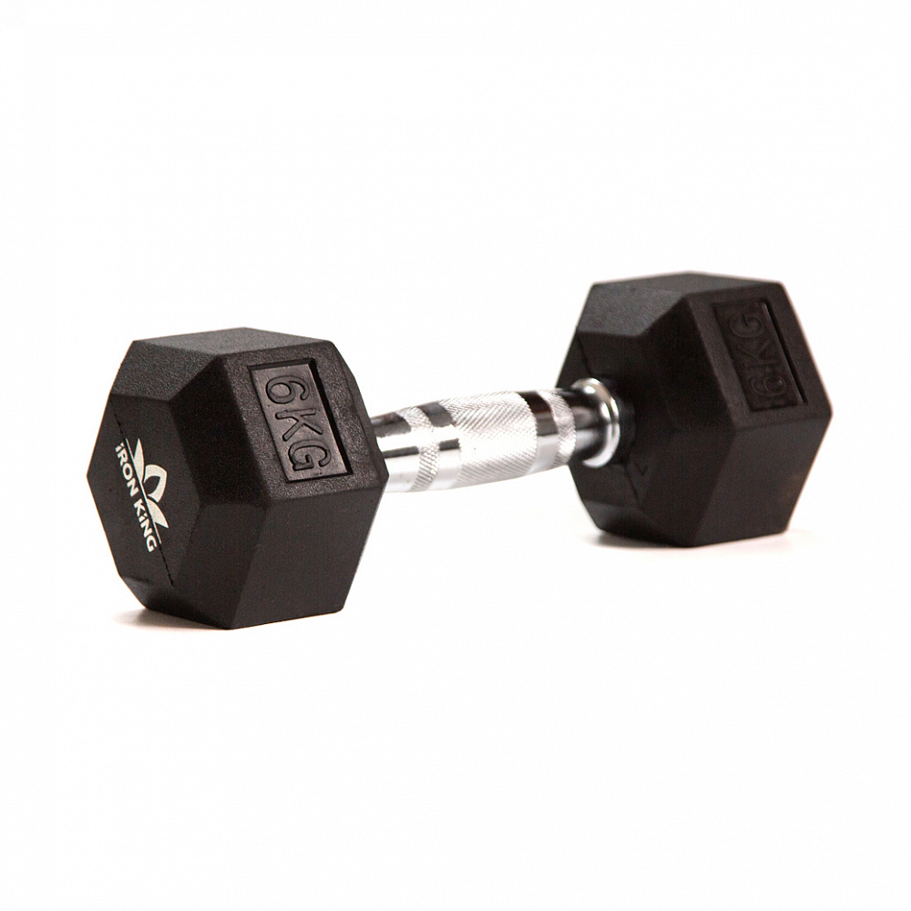Гексагональная обрезиненная гантель 6 кг. Цельнолитые утяжелители не соскользнут с рукояти в отличие от дисков. Резиновое покрытие не повреждает напольное покрытие при падении гантели. Преимущества гантели IRON KING: Хромированная рукоять Насечки против скольжения и надежного хвата Шестигранные утяжелители – для предотвращения самопроизвольного перемещения гантели Российская резина – нетоксичная, эластичная и прочная Цена и доставка от производителя! Возможность брендирования - нанесем ваш логотип при оптовой закупке.