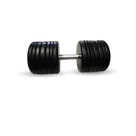 Гантели состоят из хромированных вращающихся ручек, наборных обрезиненных дисков диаметром 21,2 см и заглушек для предотвращения разукомплектации.
