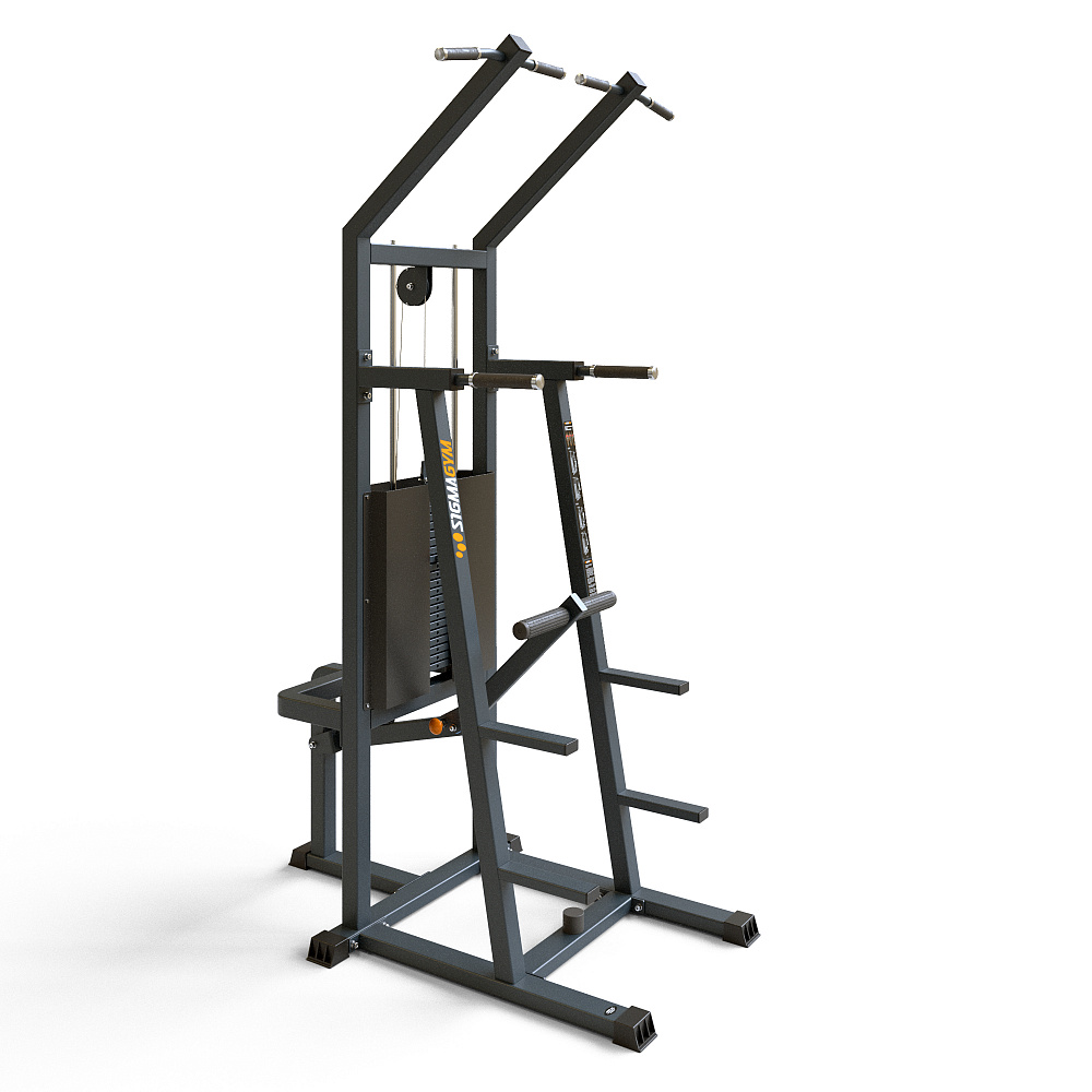 Назначение: комплексная тренировка мышц верхнего плечевого пояса путем подтягивания на перекладине или отжимания на брусьях с собственным весом, уменьшенным на вес, выбранный на грузоблоке.