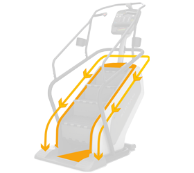 БИОМЕХАНИКА. Применительно к лестницам-эскалаторам, биомеханика скорее подразумевает связку "удобство использования + безопасность". Во-первых, размеры лестницы оптимизированы для пользователей практически любой комплекции. Даже если ноги "растут от ушей", рабочей зоны будет достаточно для комфортного использования на любых скоростях. Во-вторых, расположение и форма рукояток и поручней максимально удобны, и, что очень важно, дают ощущение устойчивости на тренажере. В-третьих, во время подготовки к старту или паузы движение ступеней блокируется. Блокировка также происходит в случае, если пользователь сошел с лестницы или в проемы ступеней попал инородный предмет (шнурок от обуви, к примеру).