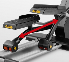 БИОМЕХАНИКА. Эллиптические тренажеры Matrix традиционно отличает великолепный ход и самая высокая эффективность выполнения упражнений. Это обеспечивается использованием не только лучших в отрасли комплектующих, но и запатентованной технологией Bioradius Perfect Stride™ (конструктивный тип рамы и рычагов, формирующих движение по сложной траектории, напоминающей ломанный овал). Технология разработана при непосредственном участии специалистов Cooper Institute - ведущего американского центра изучения профилактической медицины - и обеспечивает самую эффективную аэробную нагрузку, задействуя, в первую очередь, мышцы нижней части тела с акцентом на бедра и ягодицы. Дополняет уникальные возможности Bioradius Perfect Stride™ бесшумная трансмиссия QuietGlide™ с интегрированным бесконтактным JID™ генератором. Благодаря такой технологической связке эллиптические тренажеры Matrix обладают лучшим в отрасли коэффициентом постоянной нагрузки. Это означает полное отсутствие провалов (т.н. "мертвых зон"), то есть равномерная нагрузка сохраняется по всему циклу вращения, что очень важно для правильной тренировки мышц.
