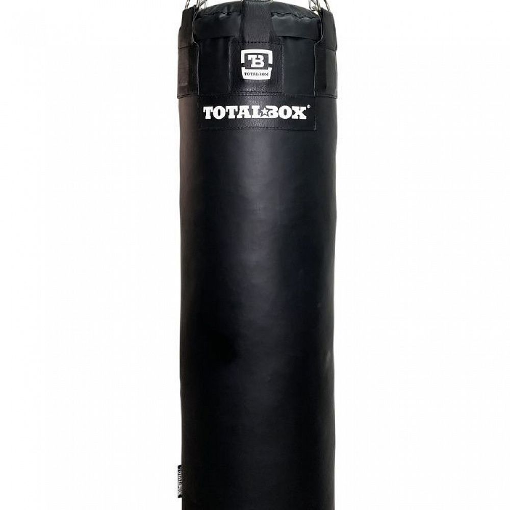 Тренировочный боксерский мешок TOTALBOX. Материал: ПВХ-ткань. наполнитель: пенорезиновые гранулы/текстильное волокно; подвесная система: карабин, цепи, полукольца.