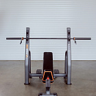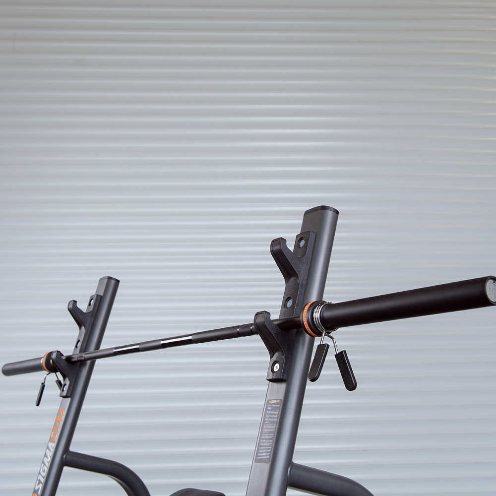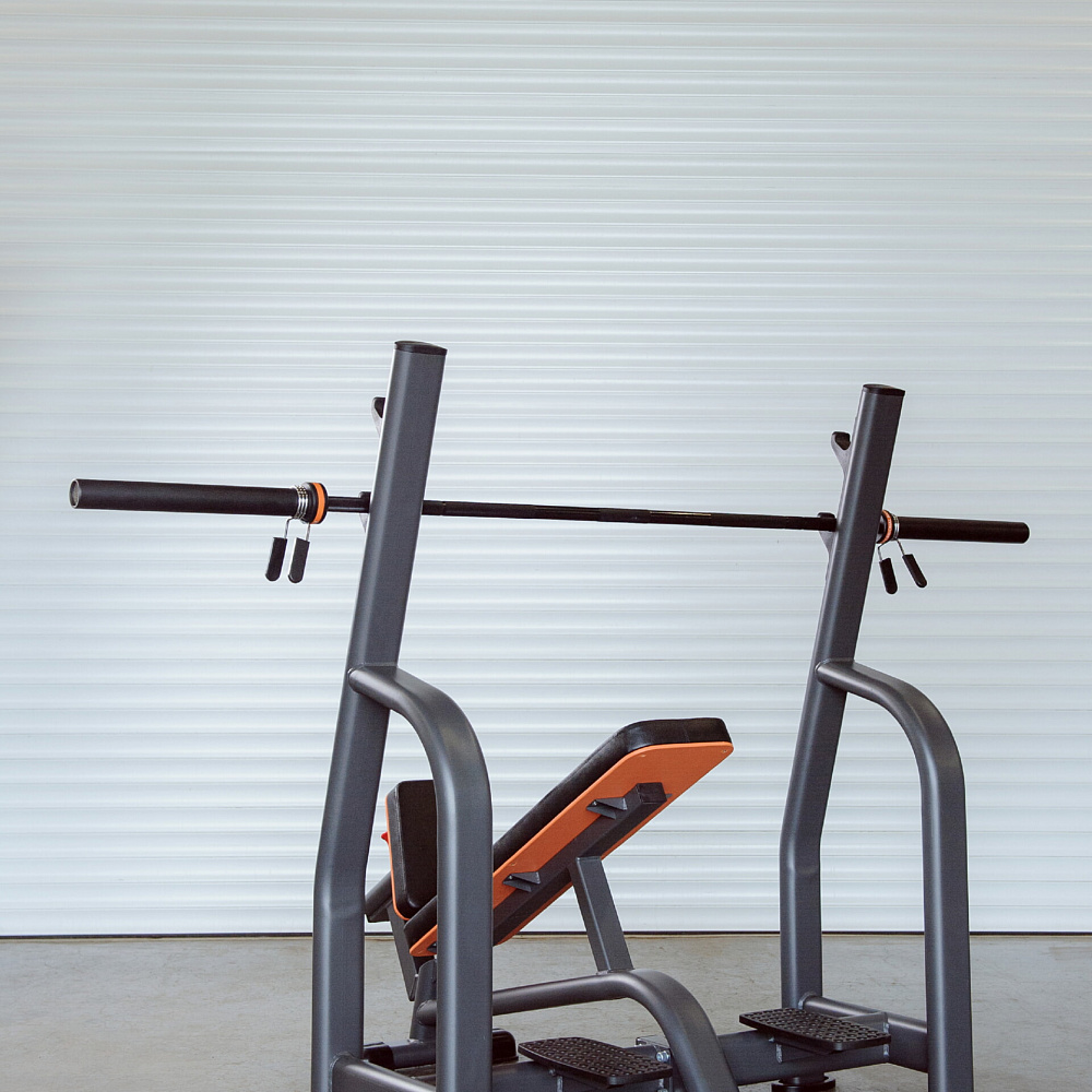 Основание скамьи выполнено из плоскоовальной трубы 100х50х2,5 мм. Благодаря мощнейшему каркасу, скамья имеет повышенную прочность, что благоприятно сказывается на безопасности тренировок и увеличивает износостойкость тренажера. На основании тренажера установлены импортные крюки для укладки штанг нескольких весов. В конструкции тренажера используются нескользящие опоры из пластика, предотвращающие повреждение напольного покрытия спортивного зала.