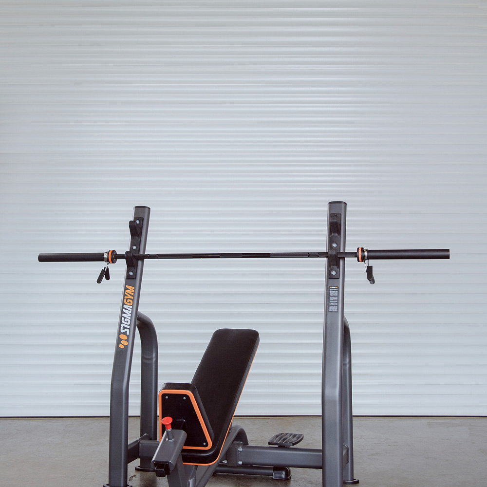 Скамейка для жима под углом вверх предназначена для выполнения жима штанги/гантелей для тренировки мышц рук и груди. В конструкции тренажера предусмотрена платформа для страхующего, оснащенная нескользящим ребристым покрытием.