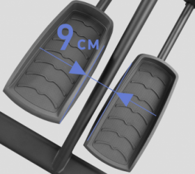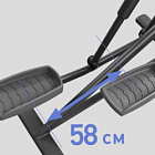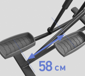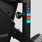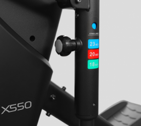 К числу других преимуществ BASE X550 относится сбалансированный маховик с инерционным весом 25 кг и механически изменяемая длина шага. Она регулируется в одном из 3 положений и может быть выставлена на 18 дюймов (46 см), 20 дюймов (51 см) или 23 дюйма (58 см). За счет переднего привода обеспечивается минимальное расстояние между педалями (супермалый Q-фактор E.S.Q.F.) - 9 см. Максимальный вес пользователя - 160 кг.