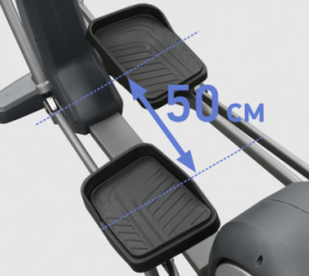 Помимо надежной высокотехнологичной системы нагружения, GO E65 обладает рядом других важных преимуществ. Безусловно, важна рама - иначе тренажер просто не выдержит высокоинтенсивных нагрузок. GO E65 построен с использованием толстого сварного профиля особой прочности (Heavy Gauge Steel). Именно поэтому нетто вес изделия составляет внушительные 132 кг, а максимальный вес рассчитан на пользователей до 180 кг. С точки зрения биомеханики рама также превосходно справляется со своими задачами. Длина шага 50 см достаточна для комфортной эффективной тренировки. Расстояние между педалями (супермалый Q-Фактор E.S.Q.F. ) составляет всего 6 см. В конструкции рамы используются высококачественные подшипники, которые существенно увеличивают надежность стыковочных узлов тренажера.