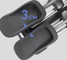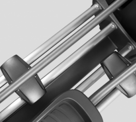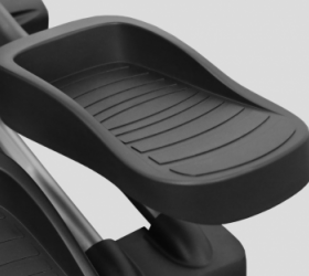 Помимо надежной высокотехнологичной системы нагружения, HIT X850 обладает рядом других важных преимуществ. С точки зрения биомеханики тренажер превосходно справляется со своими задачами. Передний привод с маховиком 30 кг обеспечивает правильную и естественную траекторию движения. Длина шага 53 см достаточна для комфортной эффективной тренировки. Расстояние между педалями (супермалый Q-Фактор E.S.Q.F. ) составляет всего 3 см - это это один из лучших показателей в отрасли и еще один плюс в копилку бимеханики HIT X850. Безусловно, важна рама - иначе тренажер просто не выдержит высокоинтенсивных нагрузок. Эллипсоид построен с использованием сварного профиля максимальной прочности (Ultra Heavy Gauge Steel). Именно поэтому нетто вес изделия составляет внушительные 117 кг, а максимальный вес рассчитан на пользователей до 200 кг. Педальный узел построен на базе переднего привода и использует 4 рельсы для качественного и надежного скольжения педалей.