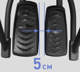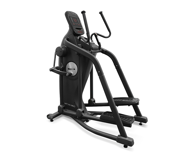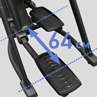 HIT XA860 оснащен передовыми решениями, влияющими на биомеханические свойства. Передний привод с маховиком 30 кг обеспечивает правильную и естественную траекторию движения. Длина шага изменяется автоматически от 48 до 64 см при помощи кнопок на передней панели. Преимущество данной функции позволяет подгонять длину шага практически под любой рост пользователя. Расстояние между педалями (супермалый Q-Фактор E.S.Q.F. ) составляет всего 5 см.