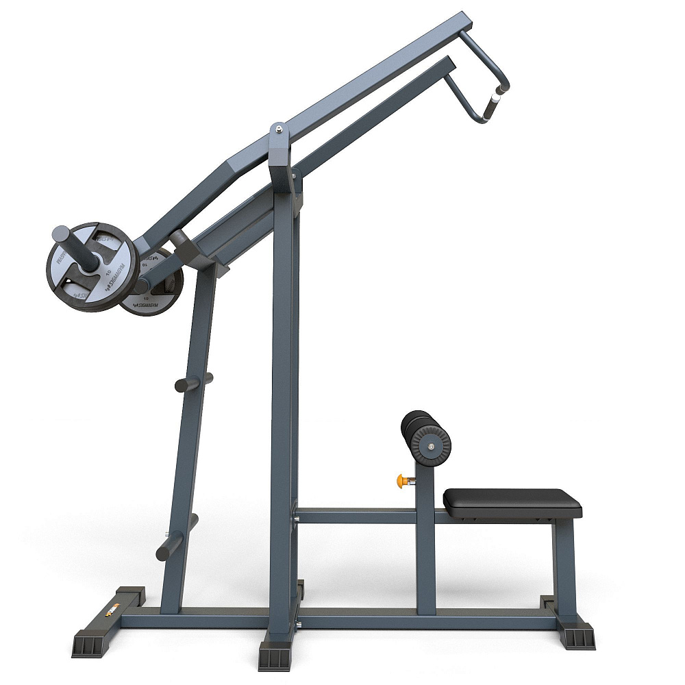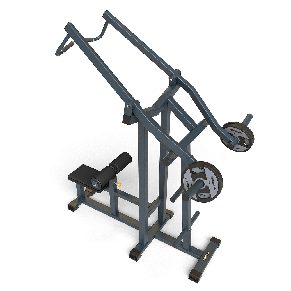 Назначение: тренировка широчайших мышц спины, задних дельтоидов, бицепсов путем тяги рычагов вниз сидя.