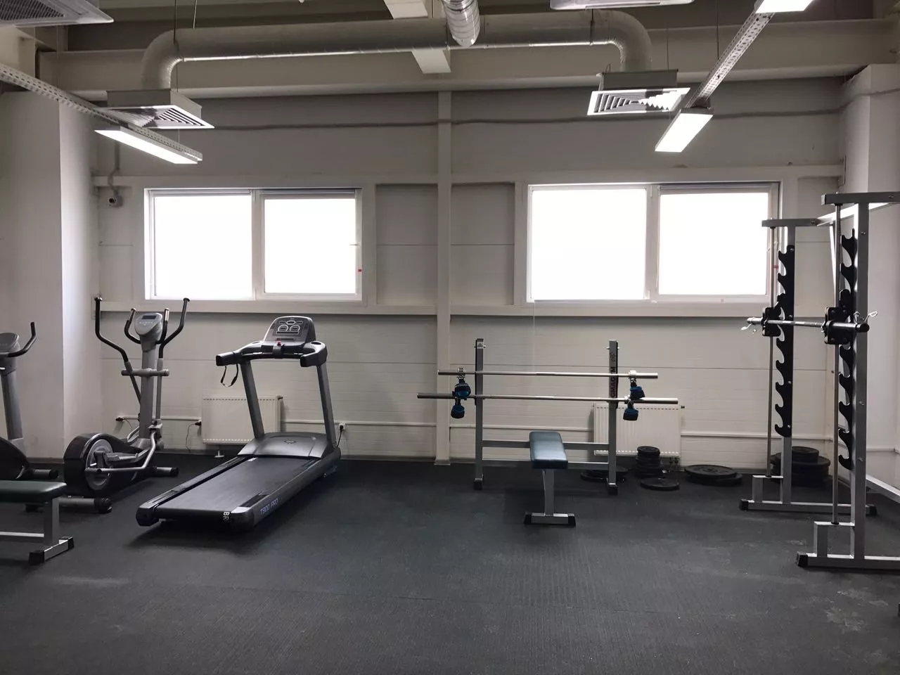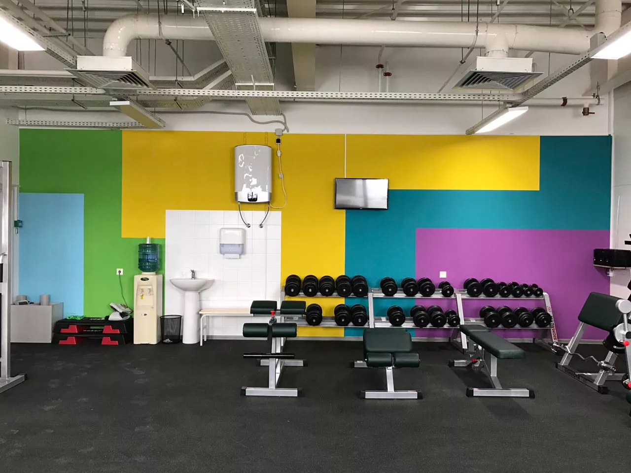 Поставлено силовое оборудование, кардиотренажеры, аксессуары для аэробики, напольное покрытие из резиновой крошки.